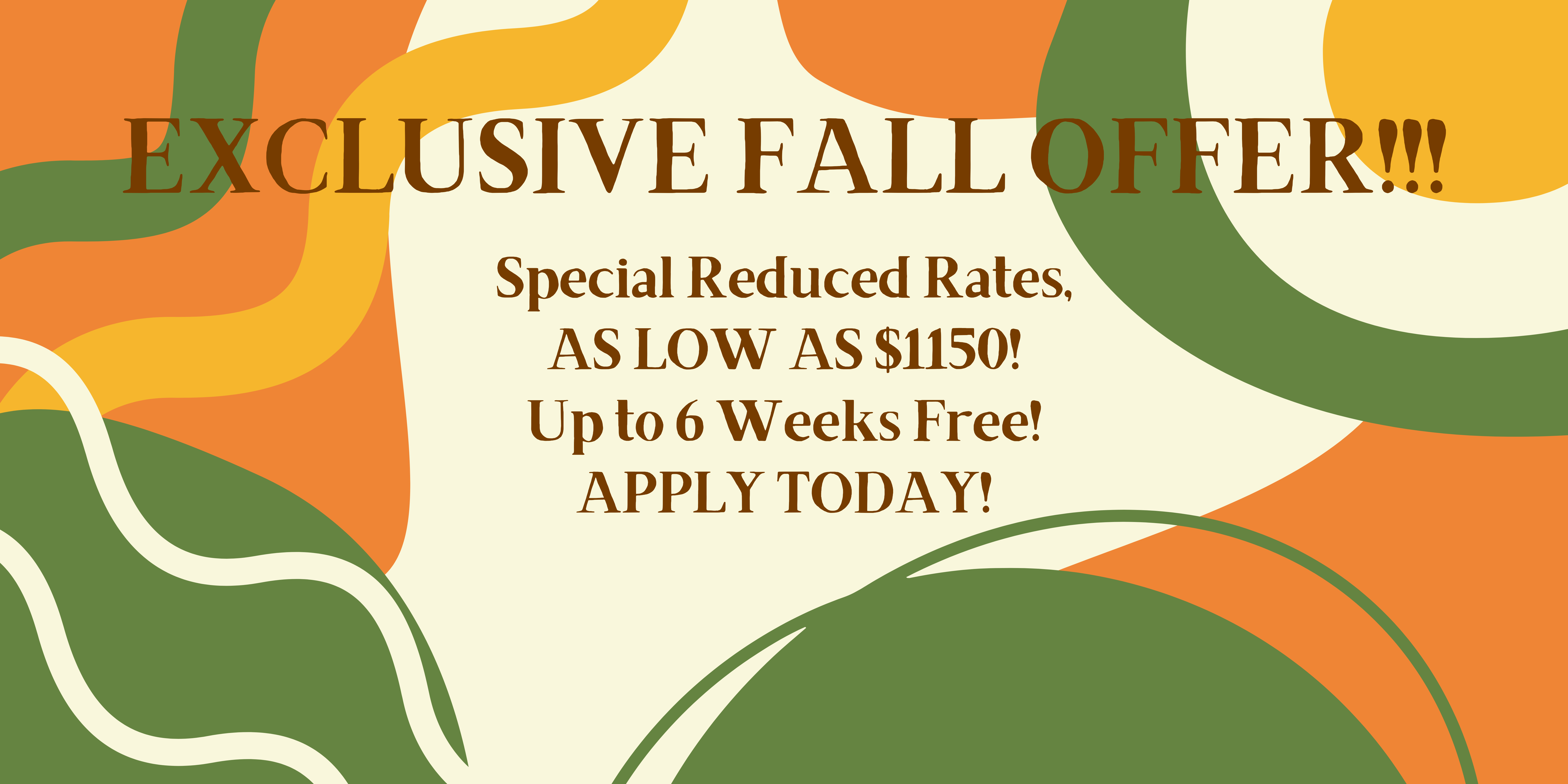 One bedrooms from $1,150, and two bedrooms from $1,250! Apply today!Specials